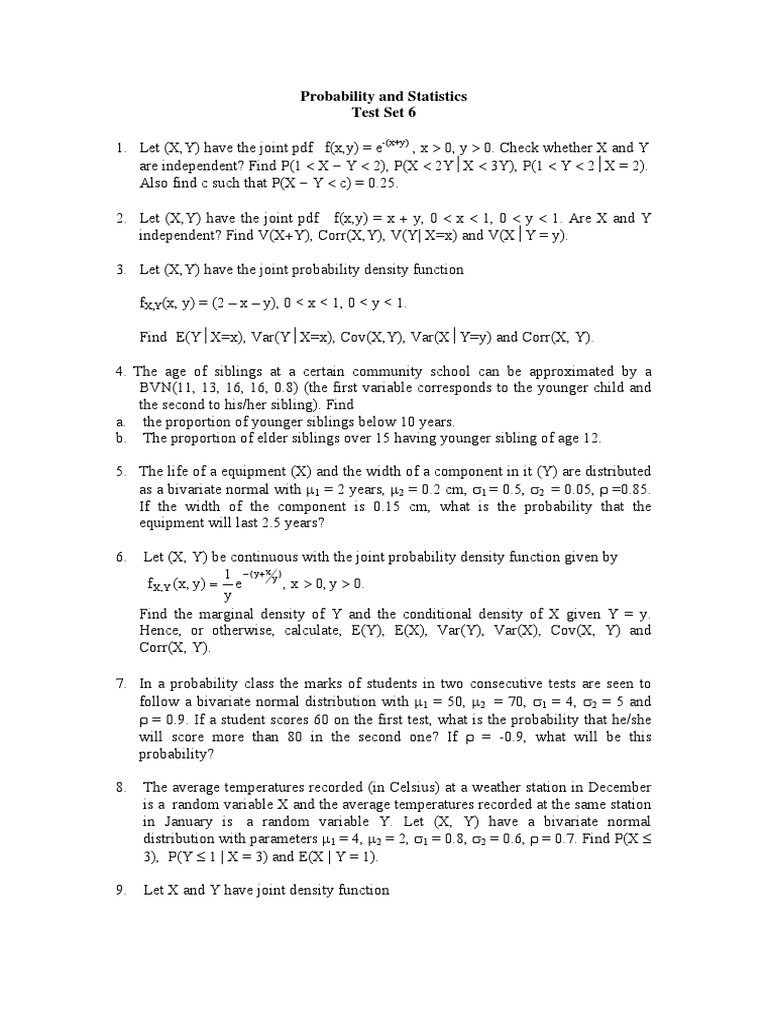 Test Set 6 Probability Density Function Correlation And Dependence
